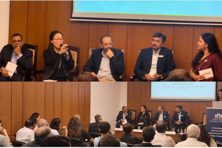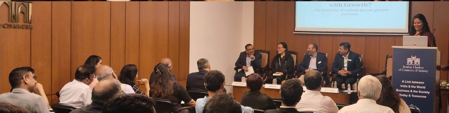 The panel—Alok Sheopurkar (PCC), Atul Gosar, Supei Liu, and Abhijat Sanghvi, moderated by Malini Nair—shared practical perspectives on the challenges organisations face while scaling. The discussion explored how leaders preserve core values during growth, navigate leadership transitions, and recognise the role of lived experiences in shaping culture over time.